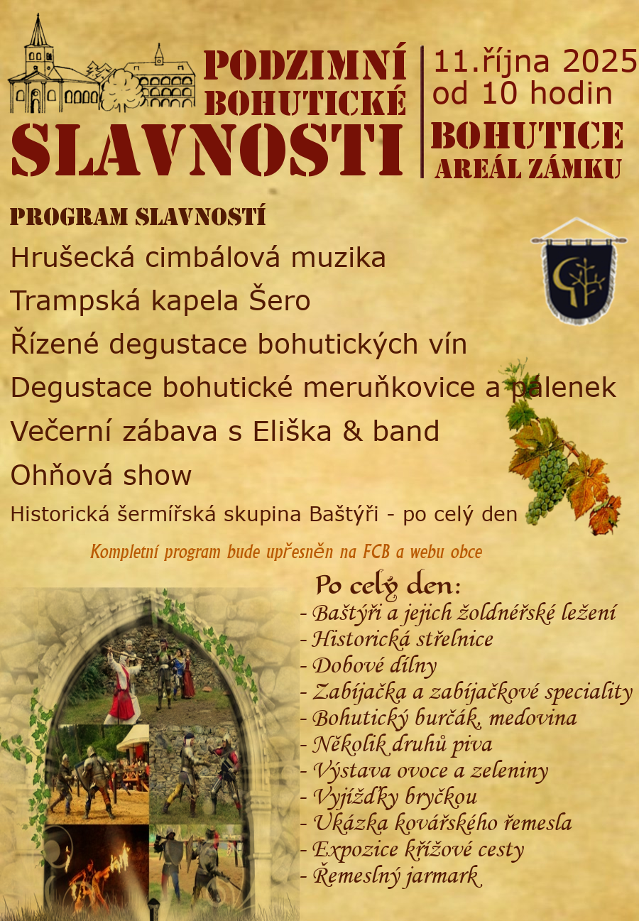 "Těšte se na zabíjačkové speciality, burčák, víno i medovinu. Čeká vás šerm, kejklíři, stará řemesla a zábava pro děti. Skvělý den pro celou rodinu!"